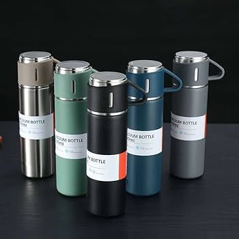 Stainless Steel Vacuum Flask Set with 2 Cups Flask Combo Keeps Liquid Tea Coffee Cold Hot Bottle Drink Water Flask Bottle 500ml Vacuum Insulated Bottle (Multicolor).
